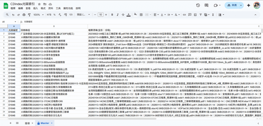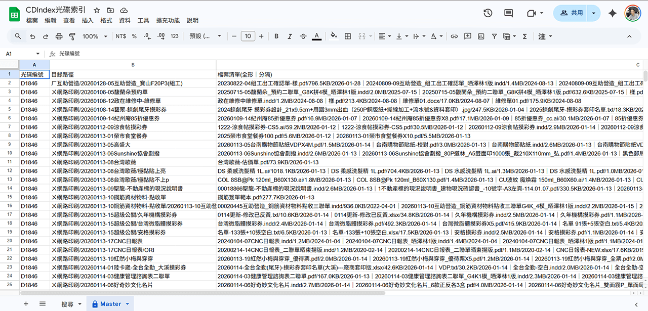 首先,透過 Gemini AI 解譯 CDIndex 的 .IDX (索引名稱檔) & .FILE (檔案屬性檔),將現有資料遷移至 Google Sheets。